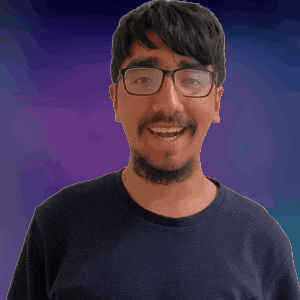 a man with glasses and a beard wearing a blue shirt