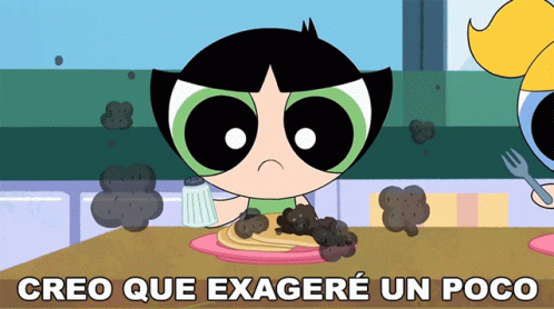Bellota, also known as Buttercup from The Powerpuff Girls, realizes she added too much salt to her pancakes.