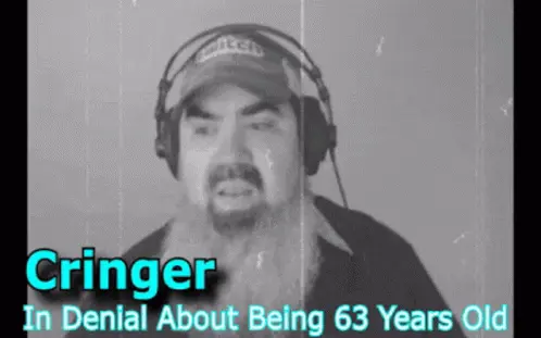 Cringer63 reacts with a facepalm while looking at an in-game recipe book, showing a moment of frustration.