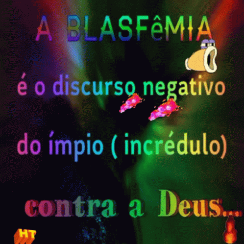 An animated text defines blasphemy as the negative discourse of the impious (unbeliever) against God.
