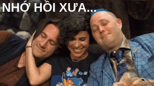 Critical Role's Matthew Mercer, Marisha Ray, and Travis Willingham share a nostalgic moment, with 'REMEMBERING THE PAST' caption.