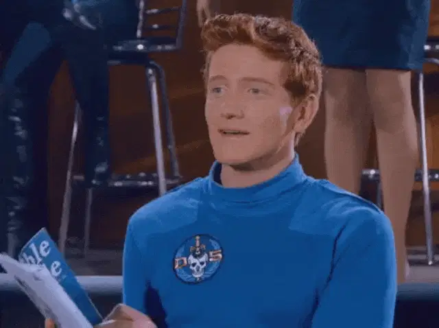 Crong, the green cartoon dinosaur from Pororo, giggles while wearing a blue baseball uniform with number 772.