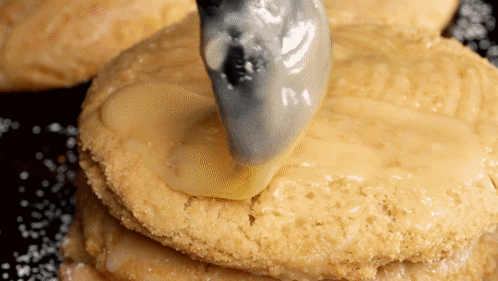 Close-up of a delicious Crumbl Cookies Kentucky Butter Cake Cookie being prepared and broken open.