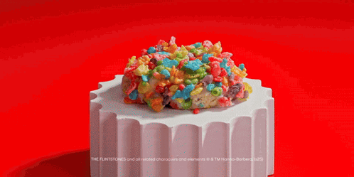 a cereal bar with a bite taken out of it and the words " the flintstones " on the bottom