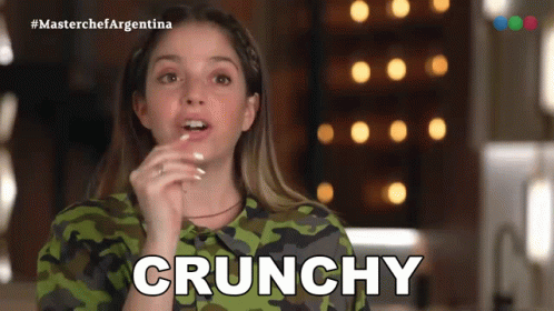 Juariu's expressive reaction to something 'crunchy' on Masterchef Argentina.