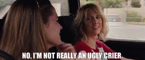 Two women from Bridesmaids discuss crying, with one stating she's not an ugly crier in a car scene.