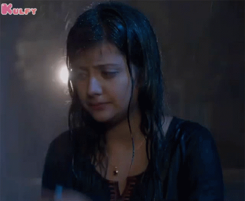 Shubhangi Pant is seen crying with tears streaming down her face while standing in the rain.