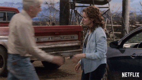 Beau Bennett (Sam Elliott) and Maggie Bennett (Debra Winger) share an emotional, comforting hug from 'The Ranch'.
