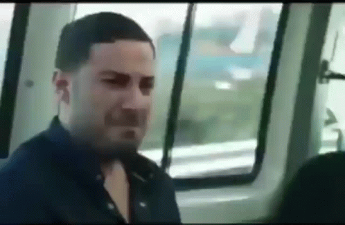 An emotional Persian man appears to be crying while sitting in the back of a vehicle.