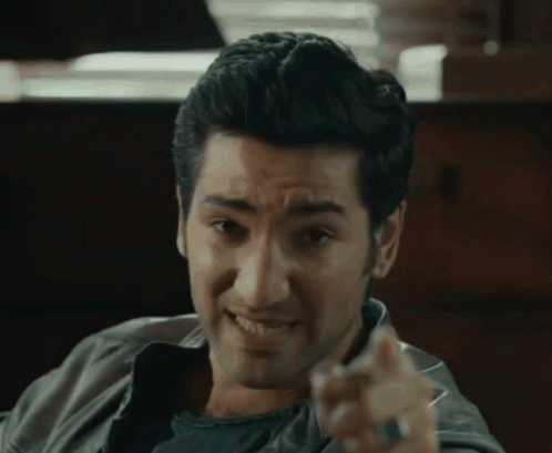 Berkay Ateş as Çukur Mahsun points directly at the camera with a confident smirk, wearing a leather jacket.