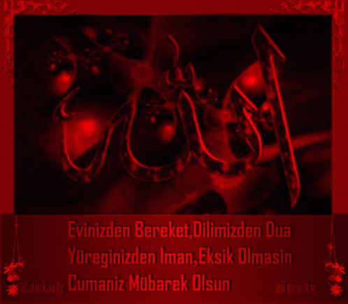 A vibrant red background with Arabic calligraphy and a Turkish blessing for a blessed Friday.
