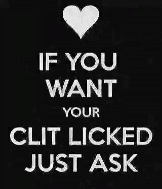 A black and white image with a heart and the text 'IF YOU WANT YOUR CLIT LICKED JUST ASK'.