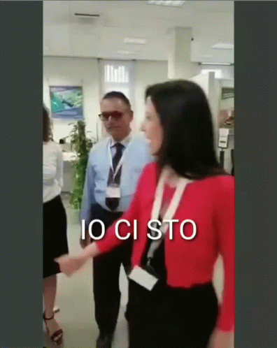 People unite with 'Io Ci Sto' gesture, showing commitment and teamwork in a bank setting.