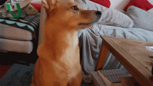 A cute brown dog named Isseymiyake Parto sits patiently and enjoys being petted on the head.