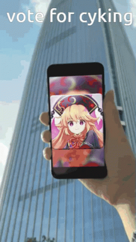 A person projects the anime character Junko from Touhou onto the Lotte World Tower with a 'vote for cyking' message.