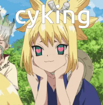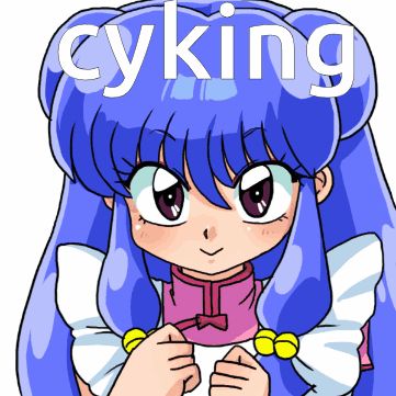 Anime character Shampoo from Ranma 1/2 with blue hair, featuring the text 'cyking' above her head.