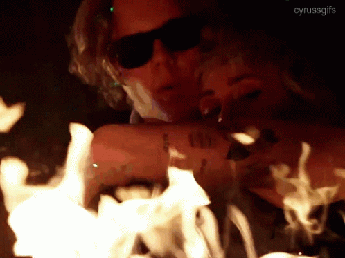 Miley Cyrus and The Kid Laroi share an intimate moment by a roaring fire, from the 'Without You Remix' video.