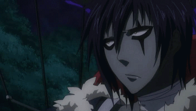 Debitto from D.Gray-man with his distinctive markings and intense expression in a dark setting.