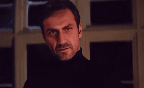 Daddy Sharp Aesop Sharp, wearing a black turtleneck, looks intently as the word 'PERFECTION' appears on screen.