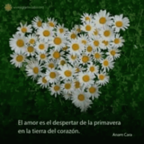 Daisy Valdes: A heart of daisies on green grass, with 'Te Amo Mucho' (I Love You Very Much) message.