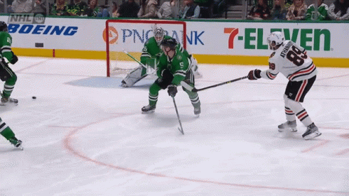 Dallas Stars goalie Jake Oettinger makes a crucial save during an intense NHL hockey game.