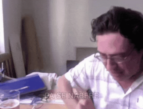 Damir Smesno reacting to the on-screen text 'OKLEN 720!?' while sitting at a table with a drink.