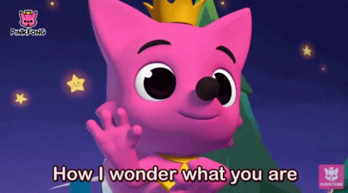 Pinkfong sings "How I wonder what you are" from "Twinkle Twinkle Little Star" in a vibrant animation.