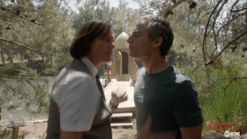 Jim Carrey and Justin Kirk in a face-to-face, intimate moment from the show Kidding.