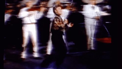 Juan Gabriel performs energetically on stage, accompanied by a mariachi band in white suits and sombreros.