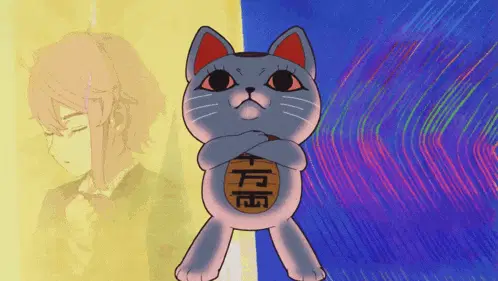a man in a red jacket stands in front of a sign that says ' ? ' on it