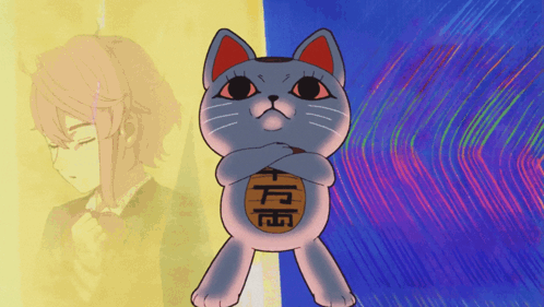 Aira Shiratori and Jiji from Dandadan, featuring a Maneki-neko with Japanese writing.