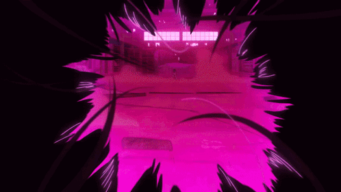 a purple light is coming out of a dark room