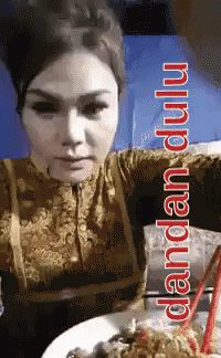 Dj Katty performs her 'dandan dulu' (make up first) routine before enjoying a meal of Mie Ayam.