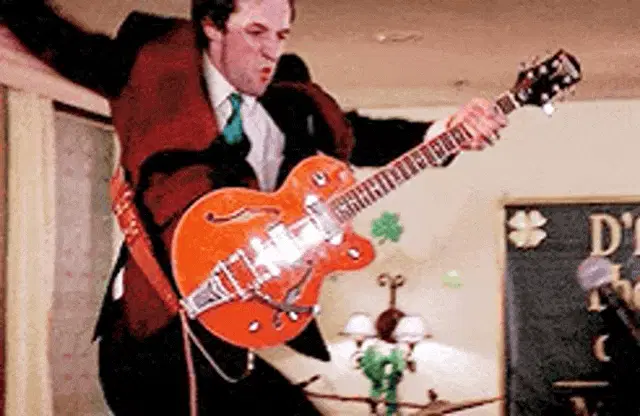 Daniela De Mijares in a close-up, with pink-toned hair and purple lighting, from Mentiras Musical.