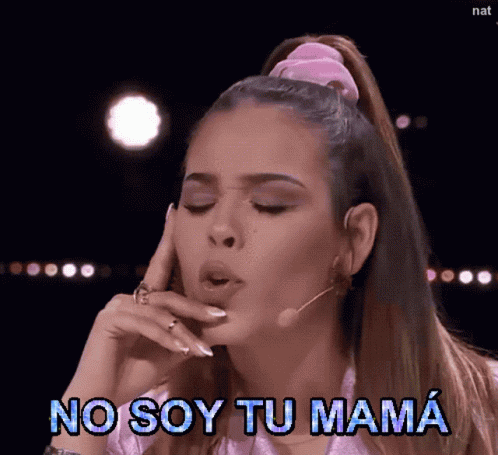 Danna Paola from La Academia reacting with 'No Soy Tu Mamá' meme, looking annoyed.