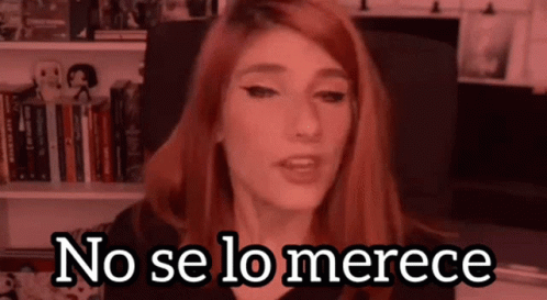 Dannaalquati in front of a bookshelf, displaying the Spanish caption 'No se lo merece' (He/She/It doesn't deserve it).