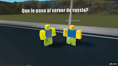 Two Roblox characters, Danymemo and Diavolo, on a street, asking 'What happened to the Russia server?'