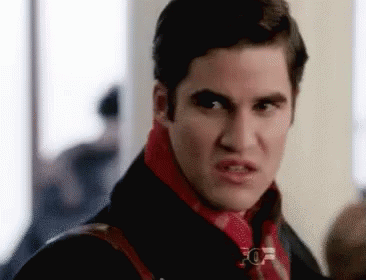 Darren Criss looks offended, wearing a red scarf and black jacket, with the caption 'Me ofendes'.