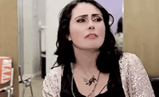Ana (Tina Romero) smiles, holding a red fan, and checks her watch, hinting at a rush.