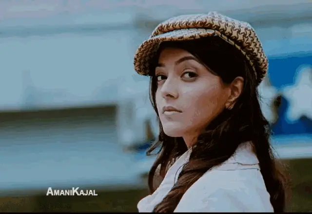 Kajal gracefully stretches and poses, wearing a vibrant red top and green saree drape.