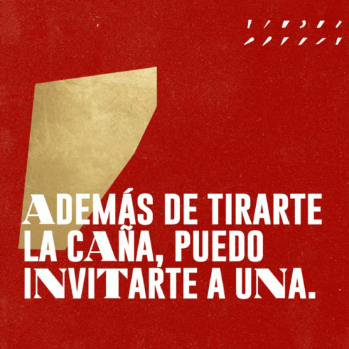 A playful Spanish phrase on a red background: 'Besides flirting with you, I can invite you to a beer.'