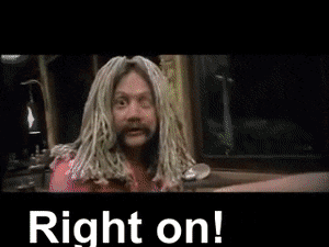 Drew Barrymore and Adam Sandler in a memorable scene from 50 First Dates, featuring the caption 'Right on!'.