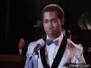 David Ruffin, legendary singer of The Temptations, walks onto the stage to a clapping audience, ready to perform.