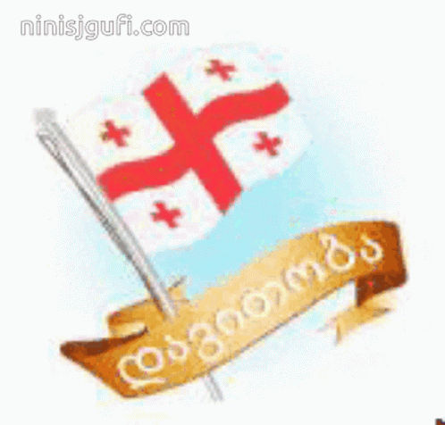 A cartoon drawing of the Georgian flag waving with a ribbon celebrating Davidoba, a significant Georgian holiday.