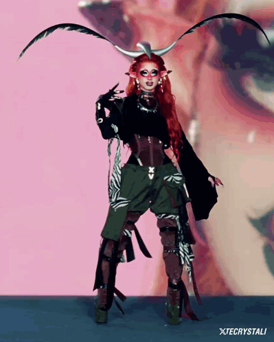 Dawn from RuPaul's Drag Race Season 16 in a fierce promo look with red hair and horns.