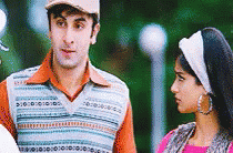 Ranbir Kapoor and Ileana D'Cruz share a sweet moment, looking at each other in a scene from Barfi!.