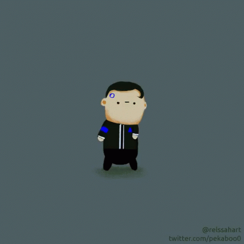 A cute, chibi-style animated character resembling Connor from DBH performs a simple dance.