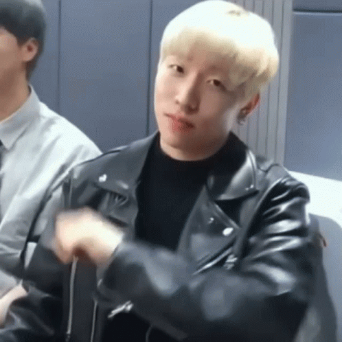 Dcrunch's Sangchan with blonde hair, wearing a leather jacket and making a funny face.