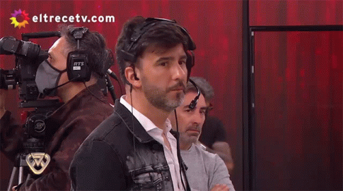 Man with headphones in a TV studio, likely for Showmatch La Academia, showing agreement.