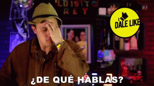 Luisito Rey, wearing a hat, expresses confusion and frustration, asking 'What are you talking about?'